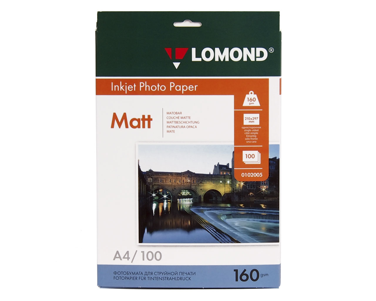 Фотобумага матовая односторонняя Lоmond (0102005), 160г/A4/100л