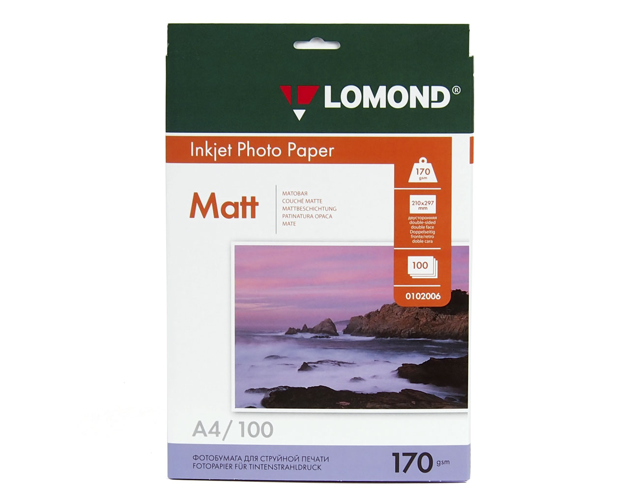 Фотобумага матовая двухсторонняя Lоmond (0102006), 170г/A4/100л