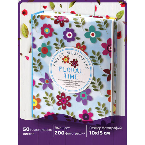 Фотоальбом 200 10x15 BRAUBERG твердая обложка, "Цветочки", разноцветный, 391119