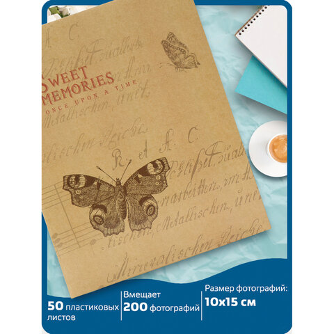 Фотоальбом 200 10x15 BRAUBERG "Бабочка, крафт", твердая обложка, термосклейка, 391164